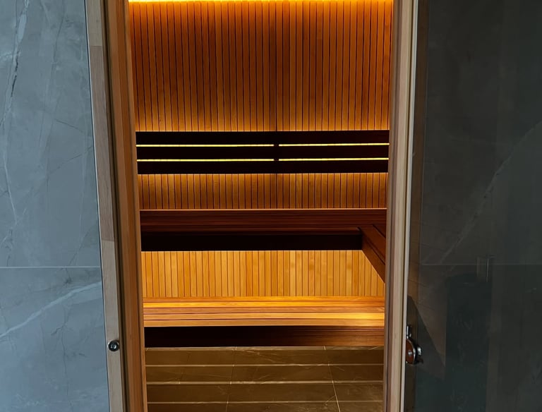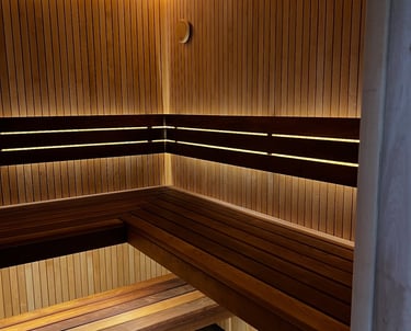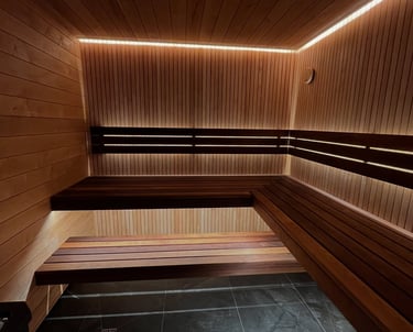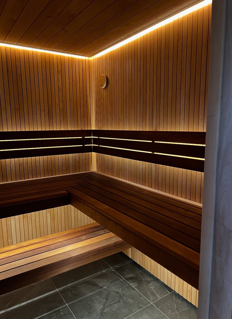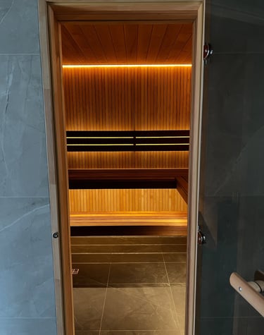 Lumi Sauna is a modern wellness space where soft LED lighting creates a floating, calming atmosphere. Designed to combine natural wood, warm light, and deep comfort, this sauna turns every session into a true ritual of relaxation.